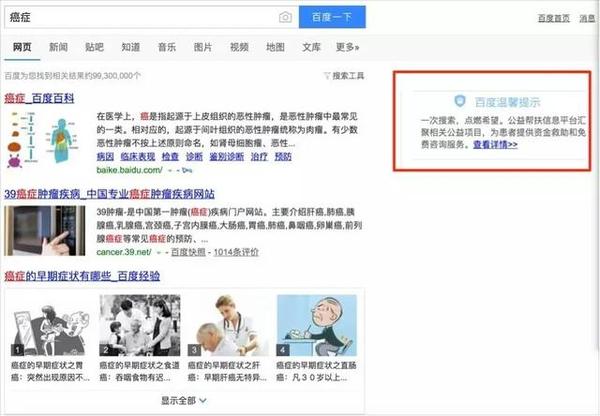 在百度搜索癌症等重大疾病的关键词不会再出现任何的商业广告